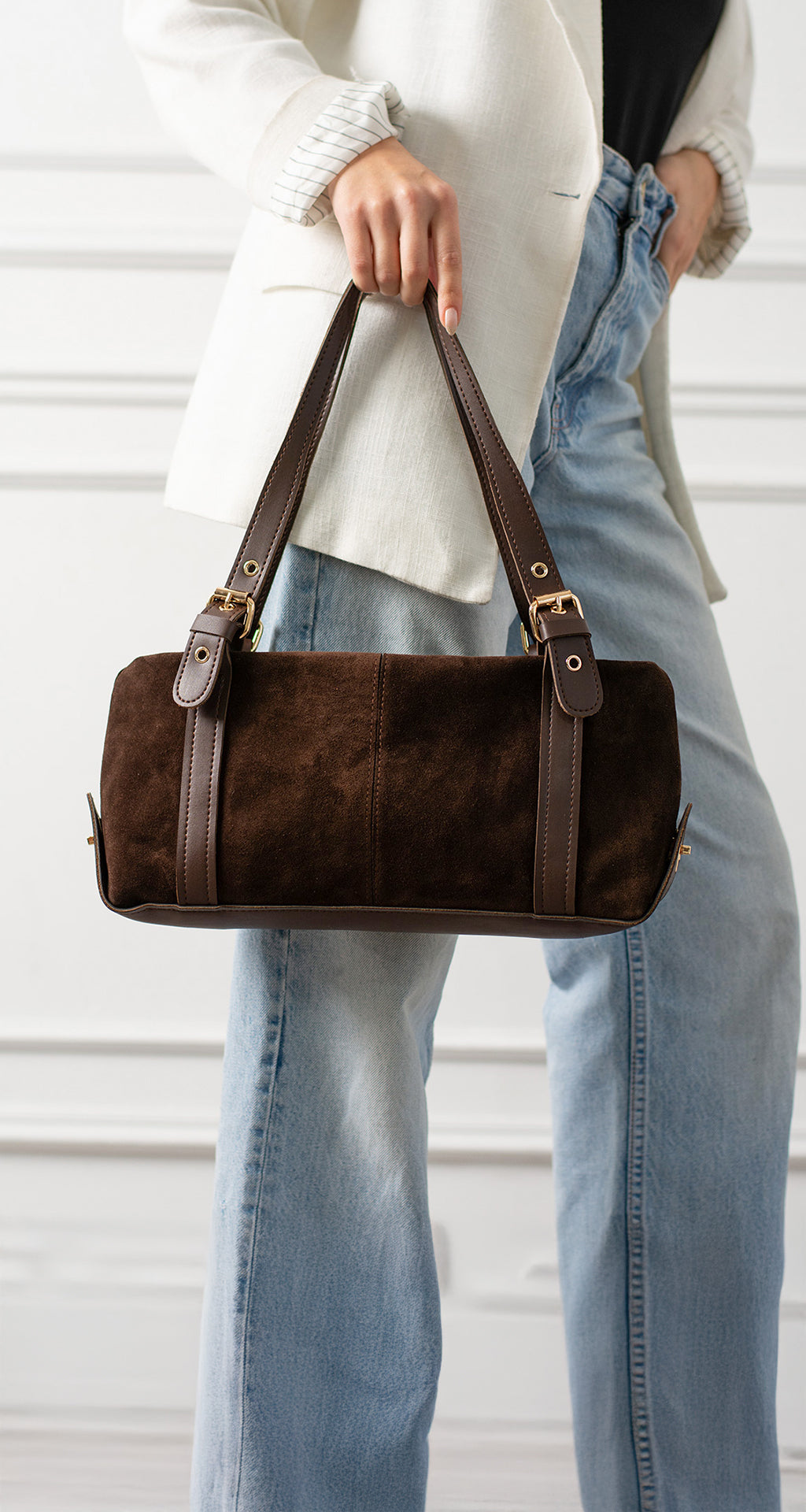 Çıkarılabilir aksesuar detayı, tasarıma iki farklı stil kazandırarak zahmetsiz bir şıklık sunar.
