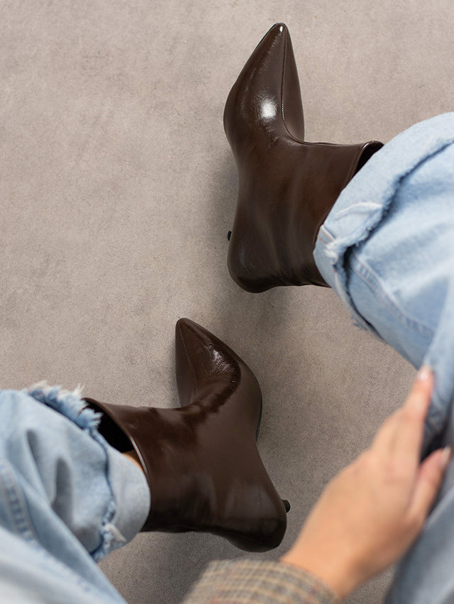 Carmen Kahverengi Sivri Burun Arkası Açık İnce topuklu Ayakkabı -